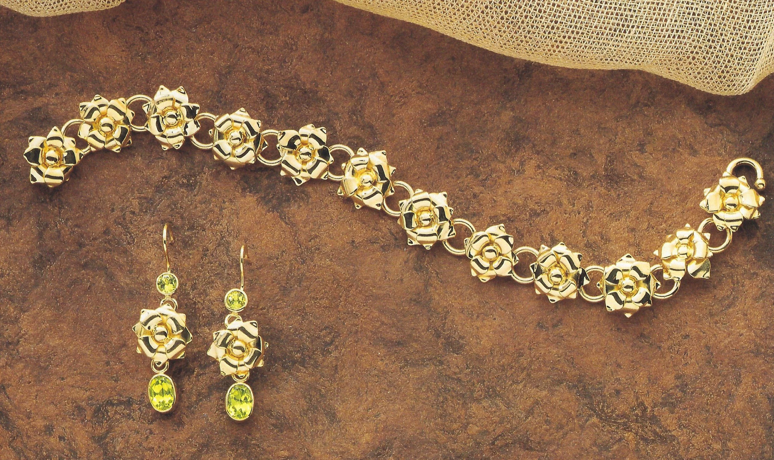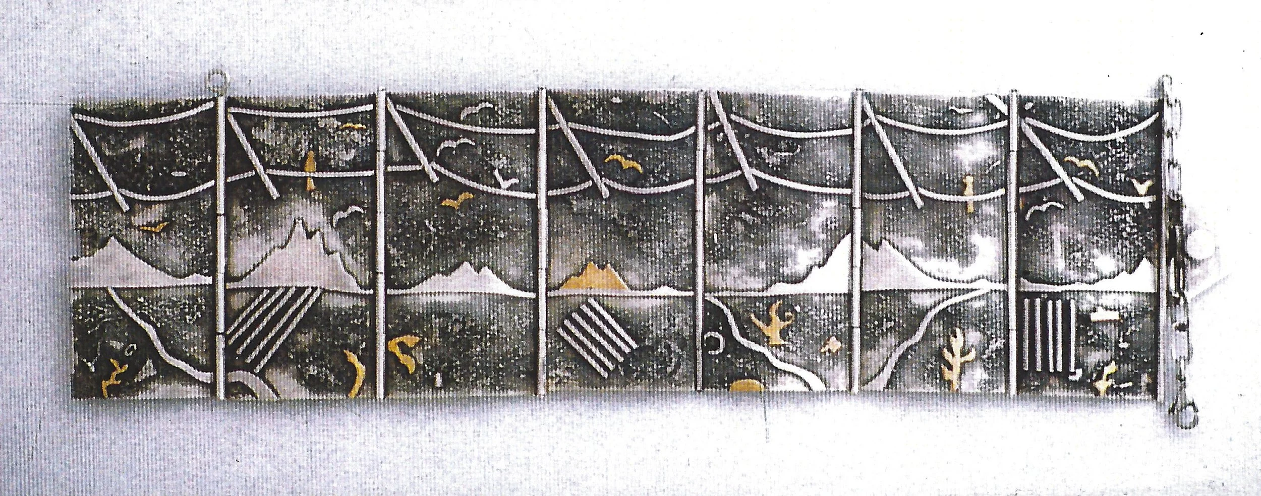 Bracelet: 14k gold & sterling silver, 6” L x 1 3/4” W